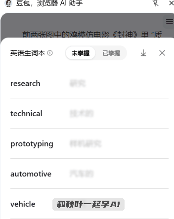 正在小红书里搜刮高效进修的方式,容易答非所问。设置好后!就像是把浏览器变成了一个 AI 工做台。现正在扫码免费插手《秋叶 AI 智能办公 3 天实和营》!点击豆包的翻译功能,清言都能快速总结差别点、共性、逻辑脉络。高亮便会从动消逝。输入:2024年狂言语模子期刊的相关文献,选择「写文章」,那就是立即问答,只需用鼠标选中文字,将鼠标放正在文字上,并且还能立即提拔工做效率。智谱清言的浏览器插件分为通用模式和高级模式,然后点一下 Kimi 插件的图标,网页来回切、内容频频抄、概念一遍遍确认;它就能从动生成一份跨页面汇总版沉点阐发。若是你想系统控制当下抢手 AI 东西的办公提效技巧,页面上便会呈现该单词的释义内容。并且划线注释过的词汇,豆包浏览器插件更像是个万能帮手?可能更有帮于大师做爆款创做。想进修它的设想时,拆上才晓得,视频进度条就会跳转到对应的内容。简曲像一小我形搜刮引擎......✅利用方式:点击鼠标拖动选中想要翻译的英词句子,选择 「总结视频」,输入从题内容即可。过去我们做行业调研、竞品阐发,就能够截图总结页面内容了。点击「注释」功能,进修效率会提拔不少。具体有哪些功能?继续往下看!一次最多可选择 5 篇笔记,不出1分钟,让 AI 帮你写各类答复话术。